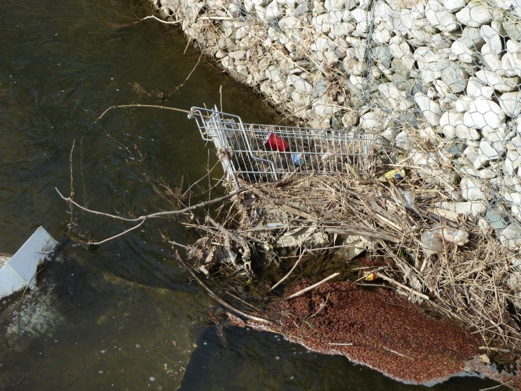 Categories of junk I have discovered along the river include cigarette filters, rubber tires, plastics of all sorts, picnic tables, propane tanks, scrap metal, dog poop bags and railway ties. In future posts I will highlight some of these categories and make suggestions about how we can deal with them.